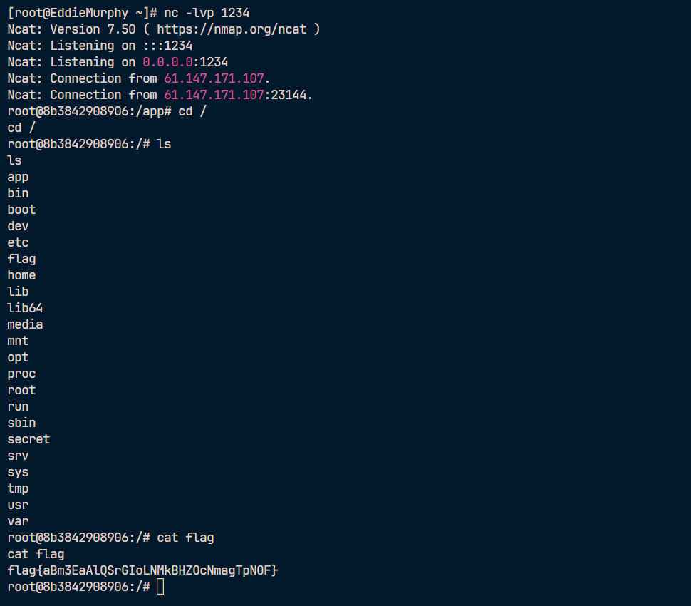 可以尝试伪造session,在cookie处打SSTI的payload来实现RCE。既然可以SSRF,那题目肯定出网,弄个反弹shell的payload: